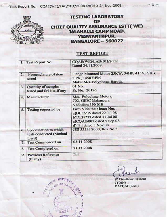 25 kW (34 HP), FRAME SIZE – 200 - Test Report