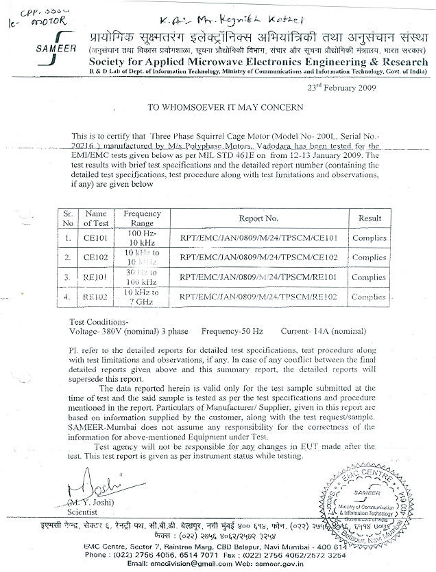 EMI / EMC Report for 25 kW (34 HP), FRAME SIZE – 200
